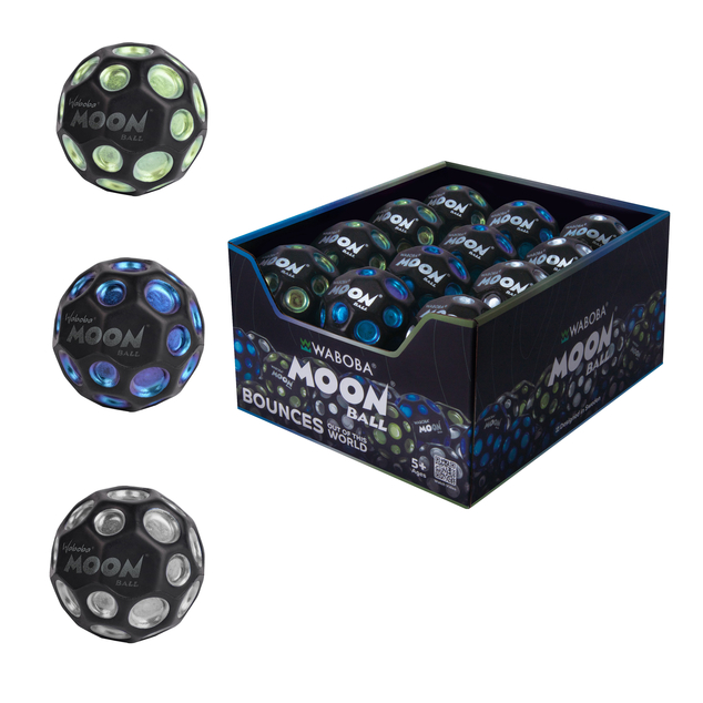 The Moon Ball is the highest bouncy ball on earth! Engineered to bounce higher than the average rubber ball, the Moon Ball’s innovative design launches it to never before seen heights. The Dark Side of the Moon ball features metallic dots! The easy-to-grip craters let the Moon Ball bounce in wacky ways with a pop sound, plus it is lightweight and durable and can be used on any surface.